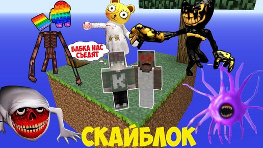 ГРЕННИ И РЕБЕНОК ХУЛИГАН ВЫЖИВАЮТ НА 1 БЛОКЕ В МАЙНКРАФТ 1000 МОНСТРОВ SCP НАПАЛИ НА НАШ ОСТРОВ