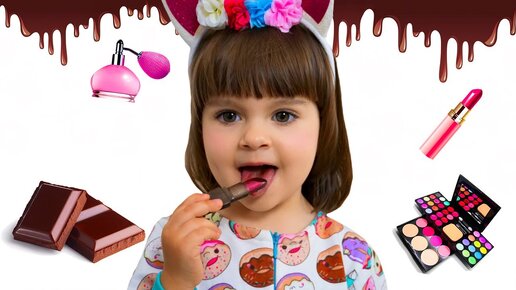 Арина играет в съедобное как шоколад и настоящее вредные сладости
