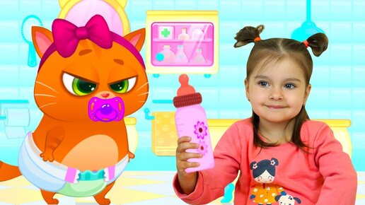 Арина и котик Bubbu играют в игре | Арина как мама собирает Бубу в детский сад