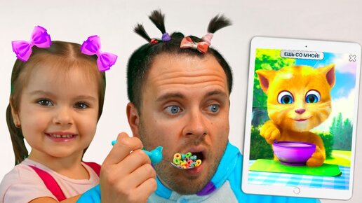 Arina pretends to be a parent for dad