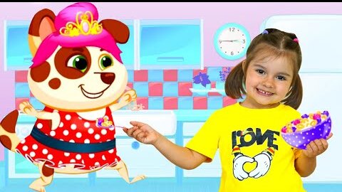 Арина и песик Duddu играют в игре | Арина как мама собирает Дуду в школу