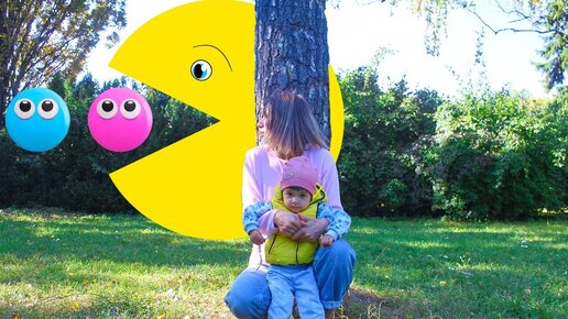 Арина играет в игру Pac-Man | PACMAN в реальной жизни ХОЧЕТ съесть маму и Арину
