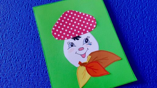 Грибок. Поделки в Школу. Аппликация из цветной бумаги. Открытка своими руками.