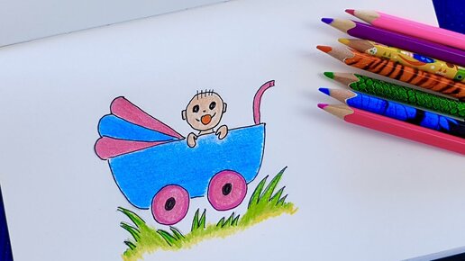 КАК НАРИСОВАТЬ милые рисунки / Как нарисовать МАЛЫША В КОЛЯСКЕ КАРАНДАШОМ, рисунки для срисовки/
