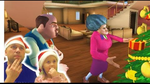 Scary Teacher: Новогодний уровень с гирлдяндой! Мисс Ти пришла к нам домой и украла нашу гирлянду!