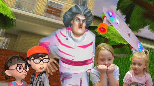 Прошли уровень со скейтбордом в игре Scary Teacher. Мисс Ти украла у Ника его скейт.