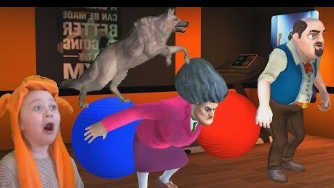 Scary Teacher 3D прохождение уровня с мячами! Тренировка с Соседом. У Училки появилась собака!
