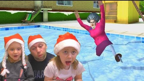 Новогодний уровень Scary Teacher 3D! Прохождение уровня на катке! Christmas Shenanigans прохождение.