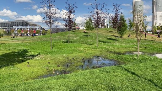 Дрозды и воробьи принимают ванну на Ходынке