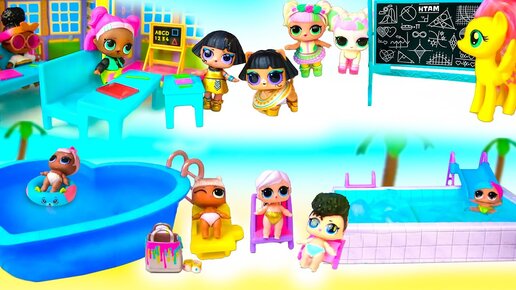 Прикольные истории у бассейна с куклами лол! Мультик Lol Surprise