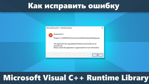 Ошибка Microsoft Visual C++ Runtime Library как исправить в Windows 10 8.1 и Windows 7
