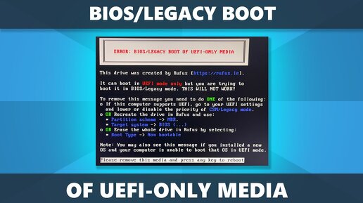 BIOS LEGACY BOOT OF UEFI ONLY MEDIA как исправить при загрузке с флешки