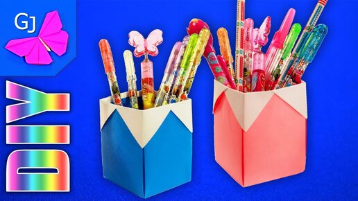 Оригами карандашница из бумаги / Коробочка Для Канцелярии / Школьные принадлежности