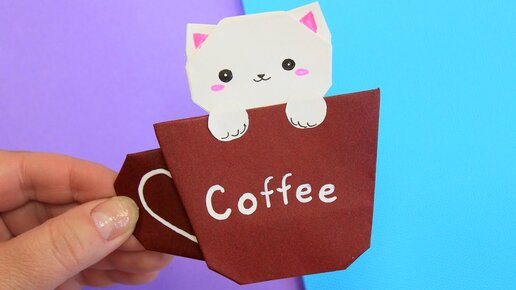 Оригами Котик в кружке / Подарок из бумаги своими руками