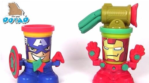 Пластилин Плей До на Русском Play Doh Капитан Америка и Железный Человек. Пластилин для Детей