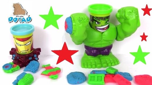 Пластилин Плей До на Русском Play Doh Hulk. Iron Man Халк и Железный Человек. Пластилин для Детей