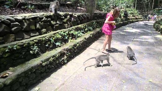 Голодные обезъяны нападают на беззащитную девушку