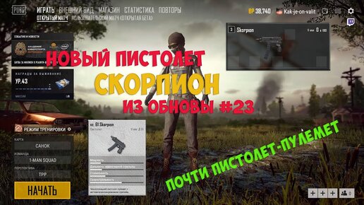 Новый автоматический пистолет Скорпион из обновы № 23 в PUBG!