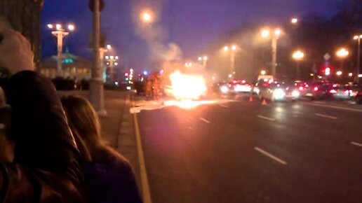 Минск: Peugeot с газовым оборудованием горел в центре города