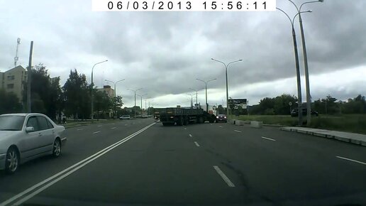 Dodge неудачно попытался проскочить перед МАЗом