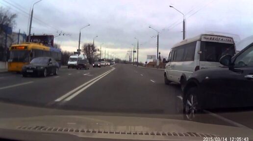 Водитель Infinity едва проскочил между маршруткой и легковушкой