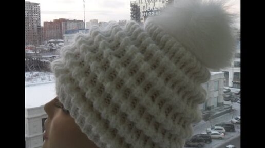Женская шапка спицами Волны-Women's cap spokes Waves (Шапка #26)