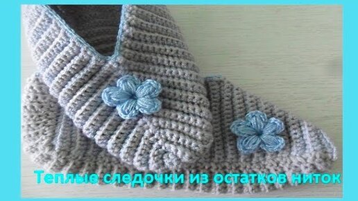 Теплые следочки крючком из остатков ниток .( с № 9) Crochet home shoes