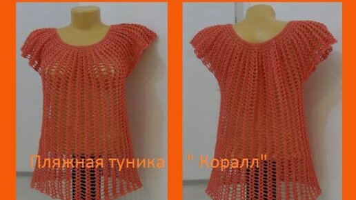 Пляжная туника Коралл (для начинающих).Crochet tunic ( в № 61)