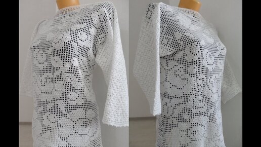 Белая филейная туника Розы и бабочки 5часть завершение (в №31)