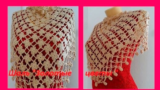 Шаль Золотые цветы крючок.How to Crochet a Shawl ( шаль # 49 )