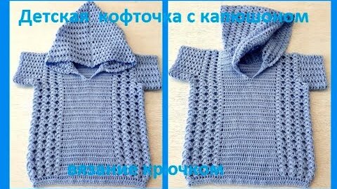Детская КОФТОЧКА с Капюшоном , Вязание КРЮЧКОМ ,по схеме ,( бэби № 97)
