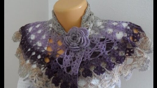 Ажурная накидка из Кауни крючком (mini shawl) (Шаль #12)