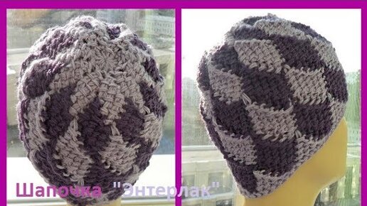 Шапочка Энтерлак ,вязание тунисским крючком,Crochet Tunisian Hat(шапки №121)