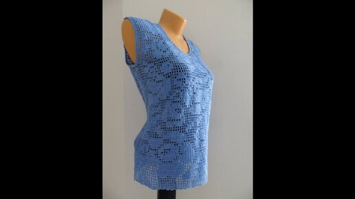 Голубой топ, провязывание рукава.(crochet top) (в №17)