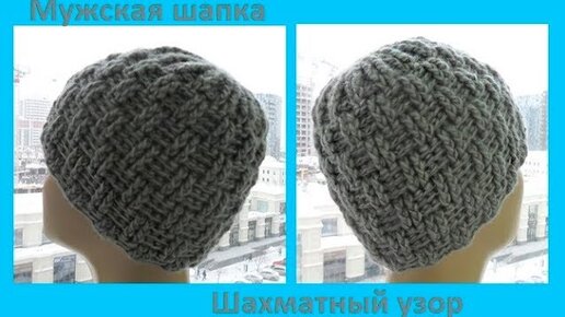 Мужская шапка шахматным узором ,вязание крючком,crochet hat (шапка №142)