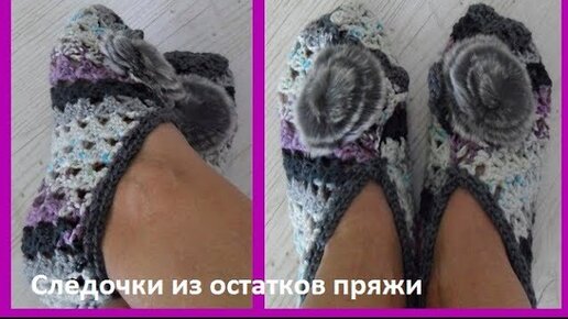 Следочки из остатков пряжи, очень простое вязание крючком,crochet slippers ( с № 30)
