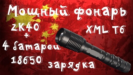 Мощный фонарь ZK40 на диоде XML T6 с комплектом аккумуляторов! Полный обзор!