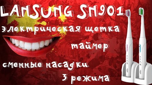 Lansung SN901 - недорогая звуковая зубная щетка с 3 режимами, 4 насадками и таймером c Aliexpress!