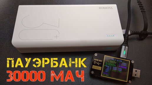 Ёмкий бюджетный пауэрбанк ROMOSS Sense 8+ 30000мАч с быстрой зарядкой.