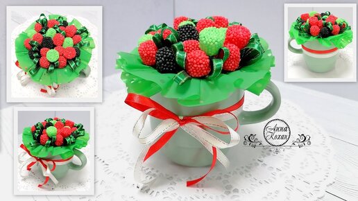DIY🍬СЛАДКИЙ МИНИ ПРЕЗЕНТ ИЗ МАРМЕЛАДОК В ЧАШКЕ🍬ПОДАРОК НА 8 МАРТА🍬БУКЕТ ИЗ МАРМЕЛАДА🍬