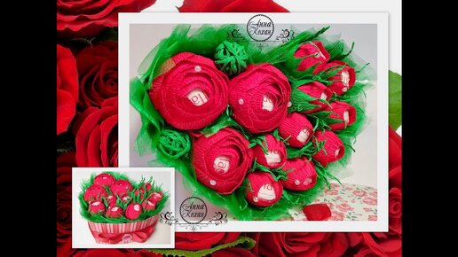 DIY🌹БУКЕТ ИЗ КОНФЕТ В ПОДАРОЧНОЙ КОРОБКЕ В ФОРМЕ СЕРДЦА НА ДЕНЬ ВЛЮБЛЕННЫХ🌹Анна Кохан🌹Мастер класс🌹