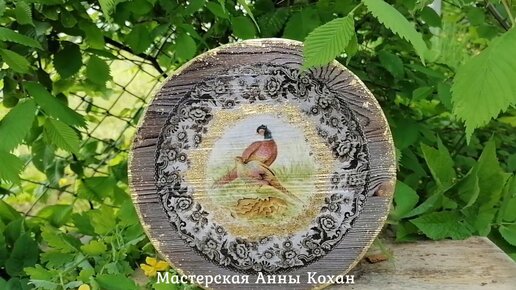 🌿РАЗДЕЛОЧНАЯ ДОСКА С ФАЗАНАМИ🌿Отделка сусальным золотом и декупаж брашированной доски🌿Пошаговый мк🌿