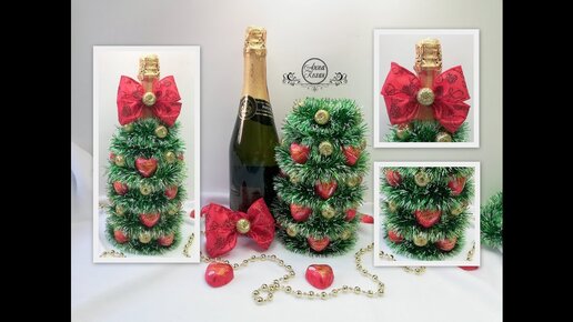 DIY🎄ЕЛКА ИЗ КОНФЕТ НА БУТЫЛКЕ ШАМПАНСКОГО🎄Съемная конструкция🎄Подарки на Новый год своими руками