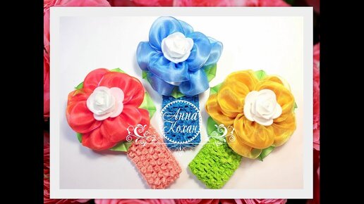 МК🍀Широкая повязка на голову с ПЫШНЫМ цветком из органзы и атласной ленты🍀Анна Кохан