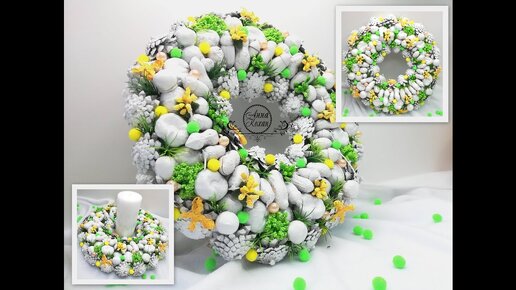 DIY✨БЕЛОСНЕЖНЫЙ НОВОГОДНИЙ ВЕНОК ИЗ ОРЕХОВ И ШИШЕК своими руками✨Новогодний декор✨