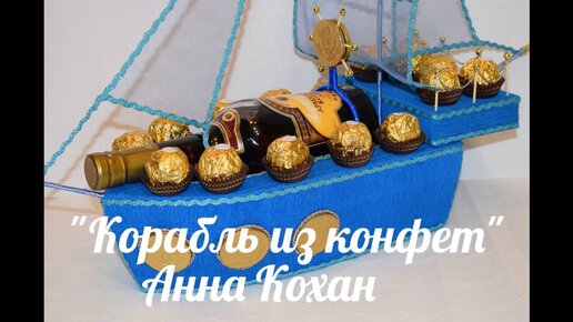 Букеты из конфет.Как сделать Корабль из конфет с коньяком. МК от Анны Кохан.