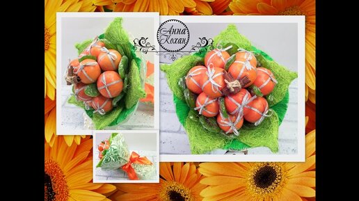 КАК ЗАКРЕПИТЬ МАНДАРИНЫ В БУКЕТЕ НЕ ПРОТЫКАЯ🍊Букет из мандаринов своими руками🍊Самый простой вариант