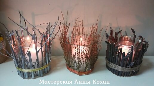 DIY🕯3 ИНТЕРЕСНЫЕ ИДЕИ ПОДСВЕЧНИКОВ ИЗ ВЕТОК своими руками🕯Уют дома🕯Мастер класс🕯Анна Кохан