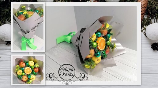 DIY💐БУКЕТ из ФРУКТОВ к НОВОМУ ГОДУ своими руками за 8 минут🍏Фруктовый букет🍏Витаминный подарок🍎