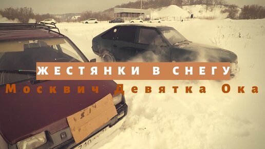Жестянки в Снегу!!! Кто заехал дальше??? Ока, Девятка или Москвич???